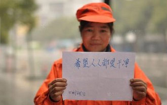 倡议书提议,要支持环卫工作,尊重环卫工人劳动。对待环卫工人,要多一份理解、尊重与关爱。当市民把垃圾袋交到环卫工的手中前,请将垃圾分好类,将碎 玻璃、钉子等尖利的物品包裹好,爱护环卫工人的手;当市民不经意看到正在劳作的环卫工时,请给他们一个温暖的笑脸;当您在沿街开店铺、办企业,请在条件允 许的情况下,为环卫工提供一处爱心休息站,哪怕是一张座椅,一壶热茶,一包纸巾,一个保温杯,一副手套,一条围巾,一支护手霜,一盒护肤露……主动给予力所能及的帮助。