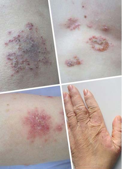 慢性湿疹:皮损多为暗红色或棕红色斑块,常融合增厚伴苔藓样变,表面可以存在鳞屑,抓痕或血痂等,周围可以散在类似皮疹。慢性皮炎在一定诱因下可以急性发作。可以选择渗透性好的糖皮质激素药膏,或者封包治疗增加其疗效。